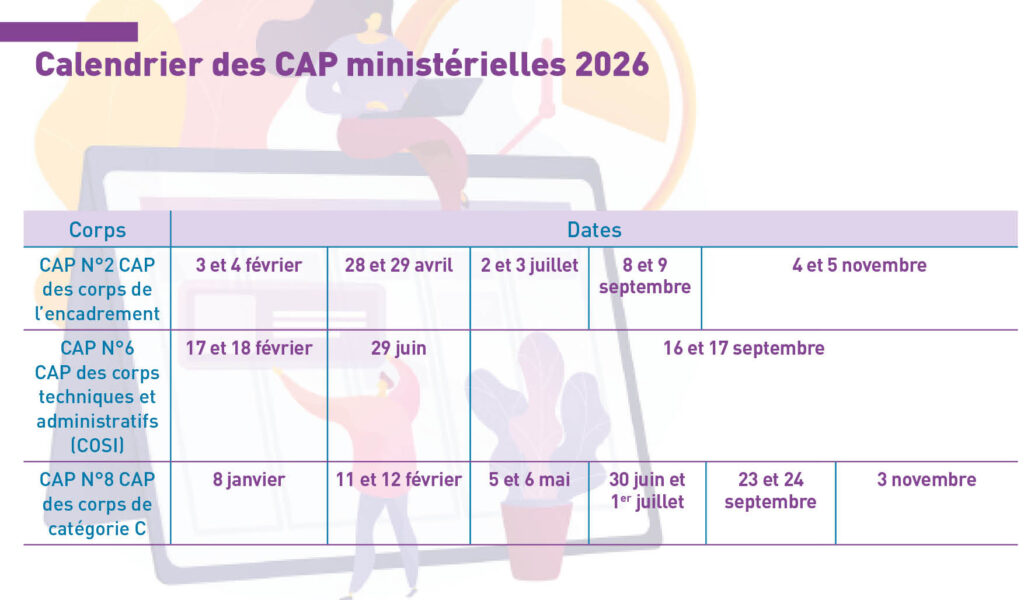 Calendrier CAP ministérielles 2026 Publié le 7 janvier 20267 janvier 2026Auteur/autrice UNSa Justice SG AC Nous sommes à votre disposition pour vous conseiller n’hésitez pas à nous contacter si vous avez des questions.